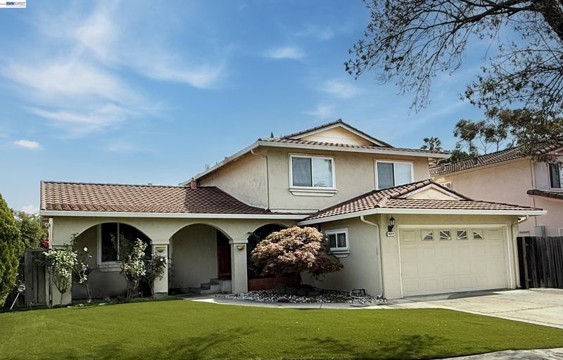 Location, location, location! Nestled in a tranquil Fremont location, this stunning 4 bedrooms, 3 bathrooms home boasts premier views of the hills. A custom cherry wood front door opens to an elegant tile entryway, leading into a thoughtfully designed interior featuring a formal dining room and a cozy family room with a fireplace. The kitchen is equipped with solid wood cabinetry, a gas Viking stovetop, a high-end vent hood, and a serene view from the sink. A conveniently located downstairs bedroom and full bathroom offer great flexibility. Fine interior details include custom hardwood flooring, double-pane windows throughout, central heating, a water softener, a metal roof, a car charger in the garage, an earthquake-safe gas line, and an LG washer. The outside is a true oasis, featuring a sparkling pool with a solar heating system, low-maintenance front yard turf, and breathtaking views of Mission Peak. This home offers easy access to Silicon Valley via I-680, I-880, and Fremont BART.