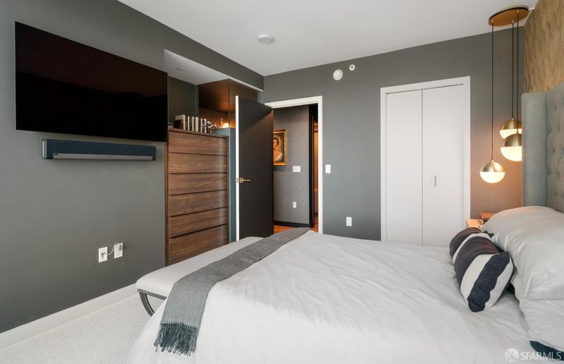 Experience refined high-rise living at The Harrison in this impeccably designed 1-bedroom + den, 1-bath residence spanning 840 square feet. Showcasing sweeping west-facing views of the historic Clocktower and Twin Peaks, the home is bathed in natural light through expansive windows. Thoughtfully curated with designer finishes throughout, this residence has been elevated beyond standard luxury with custom cabinetry, built-ins, and bespoke wall treatments. A striking black lacquer feature wall adds a dramatic, high-design focal point, setting this home apart. The chef's kitchen is appointed with premium Bertazzoni and Sub-Zero appliances, while a Bosch washer and dryer provide everyday convenience. The versatile den offers the perfect space for a home office or peaceful retreat. One-car parking is included. Residents of The Harrison enjoy world-class amenities including a 24-hour attended lobby, state-of-the-art fitness center, swimming pool, and the renowned Uncle Harry's penthouse loungean exclusive space ideal for working, entertaining, or hosting private events. Ideally located in South Beach, this residence offers close proximity to the waterfront, dining, and downtown conveniences, delivering a seamless blend of luxury, design, and city living.