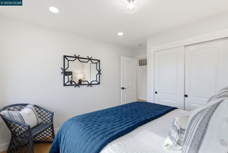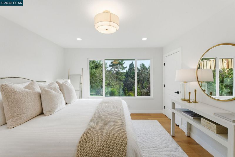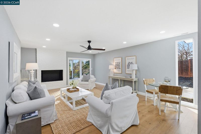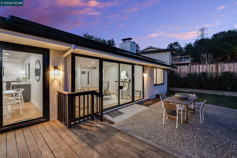 Experience elevated living in this beautifully remodeled 2,598± sq ft home offering five bedrooms and three baths in one of Moraga’s most desirable neighborhoods. The sun-filled living room features walls of glass, a striking stone and wood mantel fireplace, and seamless indoor-outdoor connection. The thoughtfully designed kitchen showcases white and gray cabinetry, quartz countertops, and sleek stainless-steel appliances and fixtures. Wide-plank engineered wood flooring, sophisticated interior paint, recessed lighting, and contemporary finishes enhance the home’s modern appeal. Expansive views extend from nearly every room, creating a bright and serene atmosphere. One level down, a spacious and versatile room provides flexibility for a family room, home office, gym, or guest space, complete with a private entrance to the backyard. Each bathroom is meticulously curated with designer tile, mirrors, fixtures, and lighting. Multiple outdoor spaces invite both entertaining and quiet relaxation, while the semi-pr