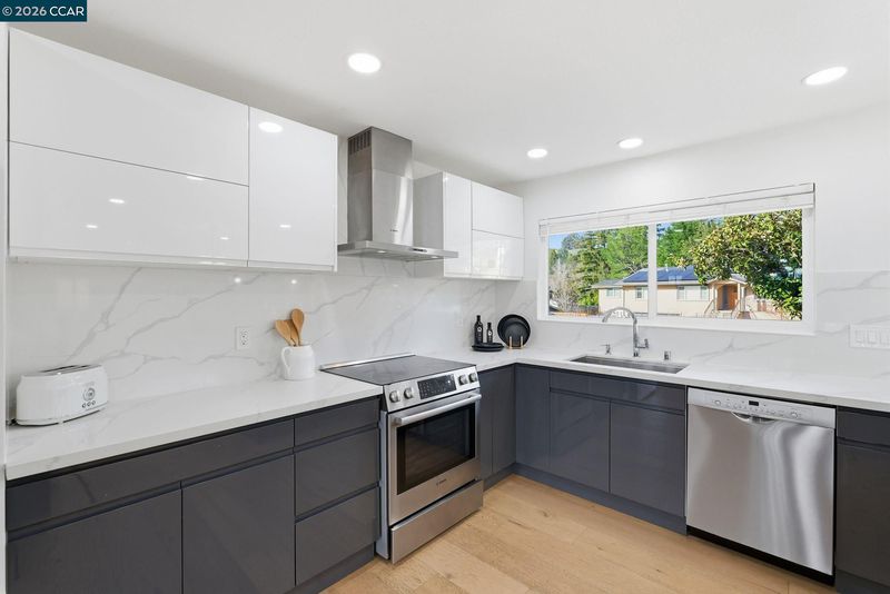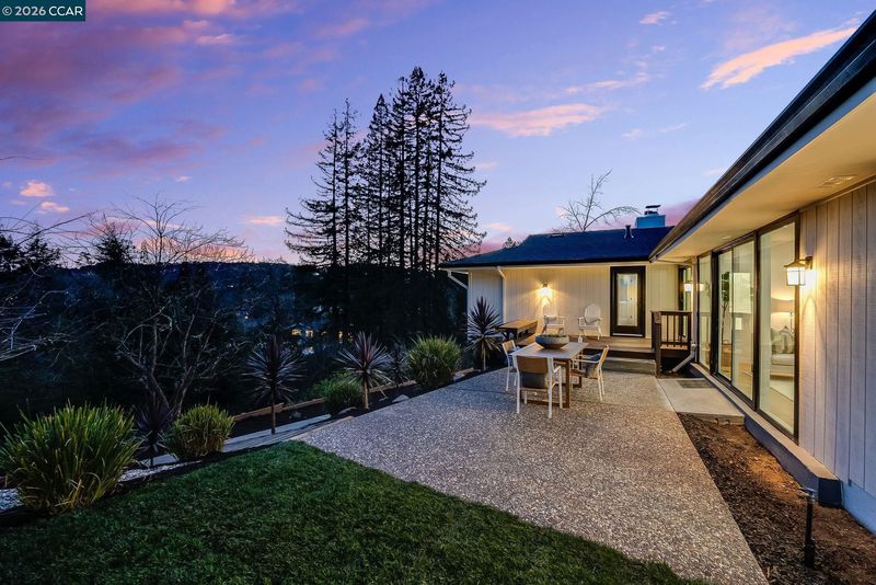 Experience elevated living in this beautifully remodeled 2,598± sq ft home offering five bedrooms and three baths in one of Moraga’s most desirable neighborhoods. The sun-filled living room features walls of glass, a striking stone and wood mantel fireplace, and seamless indoor-outdoor connection. The thoughtfully designed kitchen showcases white and gray cabinetry, quartz countertops, and sleek stainless-steel appliances and fixtures. Wide-plank engineered wood flooring, sophisticated interior paint, recessed lighting, and contemporary finishes enhance the home’s modern appeal. Expansive views extend from nearly every room, creating a bright and serene atmosphere. One level down, a spacious and versatile room provides flexibility for a family room, home office, gym, or guest space, complete with a private entrance to the backyard. Each bathroom is meticulously curated with designer tile, mirrors, fixtures, and lighting. Multiple outdoor spaces invite both entertaining and quiet relaxation, while the semi-private backyard offers a peaceful retreat. The finished garage features painted concrete flooring, and a separate rear storage area adds valuable functionality. Ideally located close to top-rated Moraga schools, parks, trails, shopping, and dining. Welcome Home!