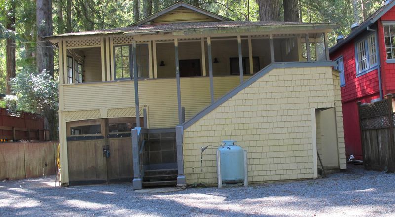 Originally built as a summer cabin. Many improvements over the years. Rewired, replumbed, reroofed, resided, new windows and much more. However still great opportunity for remodeling and personalization. Open floor plan, Livingroom-kitchen-dining area. Good separation between the two bedrooms. Skylights provide filtered sun. Wonderful covered front porch with a year round look at the neighborhood. Concrete slab lower level. Hurlbut Creek at back of the lot. AP# 072-080-032-000 is also included. Quiet neighborhood. Hugged by redwoods. Come take a look you'll want to stay.
