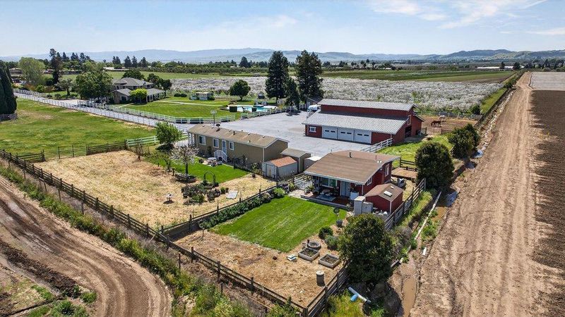 Welcome to the Lazy K Ranch! Your private sanctuary, hobbyist's playground. Discover a rare opportunity to own a breathtaking 11.54-acre estate in Gilroy's scenic countryside. Boasting 360-degree views, this 4,200 sq ft main home features 4 beds (5th option), 2 full and 2 1/2 baths, an updated kitchen, premium flooring, new copper plumbing, and an attached 2-car garage (+3 detached). Ideal for an active family, multigenerational living, or investors, this property could offer income potential as an added value. Two charming guest houses with private yards, a 495 sq ft 1-bed/1-bath Cottage and a 925 sq ft 2-bed/1-bath home. Agritourism: A popular and beloved 7.23-acre U-Pick organic cherry orchard backed by a new 400 ft Ag well. Equestrian & Hobby Barn: Versatile huge space with fenced paddocks, breezeway, loft, room for 5 stalls or ample storage, 2 workshops, and 3 garage bays. Limitless Space: Expansive paved parking for multiple RVs, trailers, and equipment. Experience private and peaceful rural living, beautiful views, and abundant potential for diverse revenue streams, all just minutes from Caltrain for an easy Silicon Valley commute. True pride of ownership shines throughout this remarkable property! Contact your agent today for a showing!