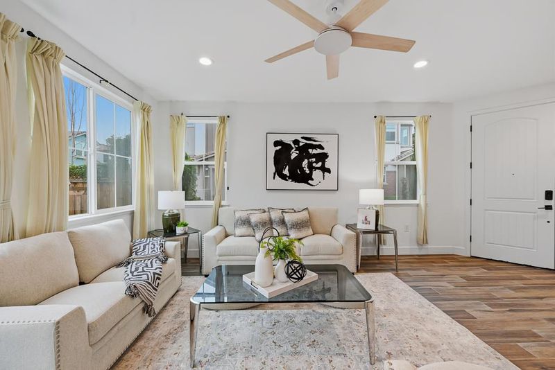 Discover this spacious 4-bedroom, 3-bathroom home located in Mountain house with 2,084 square feet of living space, this property offers a comfortable layout featuring a ground-floor bedroom and a primary suite with a walk-in closet and oversized tub. The well-appointed kitchen seamlessly connects to the family room, creating a perfect space for gatherings. Enjoy dining at the breakfast bar or in the dining area within the family room. Hardwood flooring throughout adds elegance to the home's design. The home includes a laundry area equipped with a washer and dryer. With a minimum lot size of 2,541 square feet, there's ample outdoor space for relaxation or entertainment. The property includes a 2-car garage, offering plenty of storage and parking. Located within the Lammersville Joint Unified School District, this home is a great opportunity for families seeking a comfortable and functional living environment.