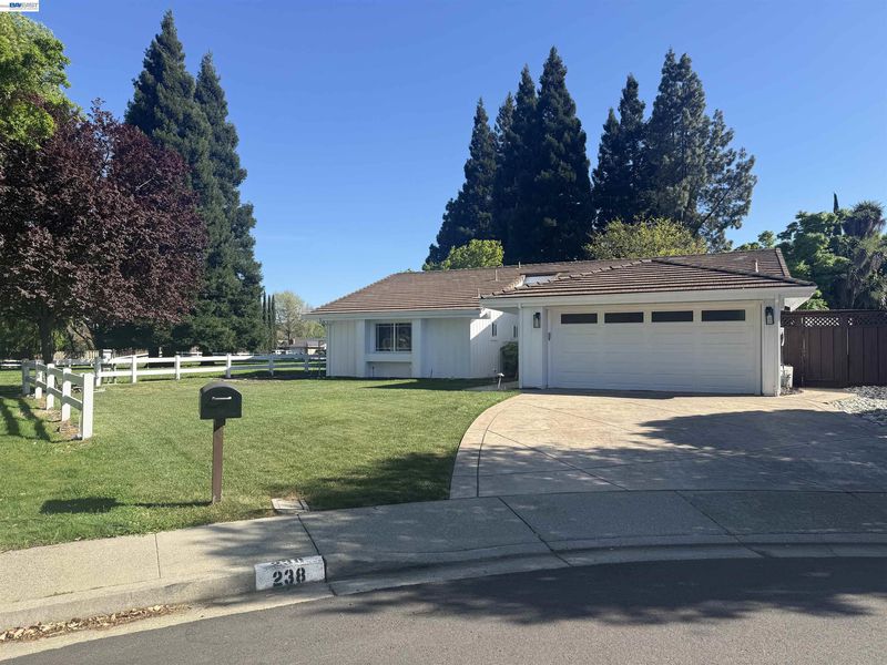 Tucked at the end of a quiet cul-de-sac, this beautifully updated 4 bed, 2 bath single story home offers a rare blend of privacy, comfort, & location, with a park & playground just steps from your doorstep. The ±1,803 sqft floor plan is filled w/natural light & features separate living & family rooms, a formal dining room, & an open kitchen overlooking the family room, ideal for everyday living & entertaining. Vaulted ceilings in the formal living room, family room, & primary suite create an open, airy feel, while rich hardwood flooring enhances the main living areas. Two gas fireplaces & two sets of Andersen doors provide seamless indoor outdoor flow. The updated kitchen features quartz countertops, new appliances, & a casual dining area. Additional highlights include EV charging compatibility & a finished garage with completed walls & black & white laminate flooring. The flat, private backyard offers a large stamped concrete patio w/overhead trellis, ideal for outdoor dining & relaxing. The adjacent park & greenbelt serve as an extension of the yard, while the cul de sac provides space for gathering & play. Located near Charlotte Wood Middle School, John Baldwin Elementary, Osage Park, & the Iron Horse Trl, w/downtown Danville shops, dining, parks, & trails just minutes away.