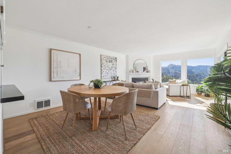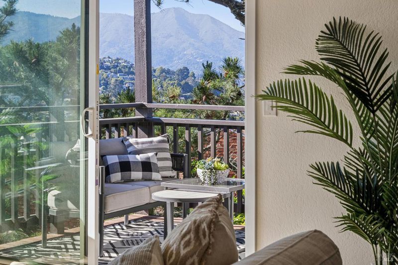 Welcome to this private home with spectacular Mt. Tam views, tons of natural light and year-round sunrises and sunsets. Generous windows frame open vista views of green and golden hillside landscapes, with Mt. Tam anchored as the showpiece. It's especially beautiful as the light shifts through the afternoon and into sunset. As an end unit the layout is open and inviting with comfortable living spaces that connect easily for everyday living and entertaining. Step outside to a private deckperfect spot for morning coffee, a quiet read, or an easy evening toast with friends and family while the sky puts on its nightly show. The bedroom has tremendous closet space with new carpet, nice hardwood floors, tons of natural light and direct deck access. The living room has the same updated and elegant hardwood floors, a cozy wood burning fireplace, and deck access via a large sliding glass door. The kitchen is well-appointed with views out to Richardson Bay, full sized dishwasher, good counter space, stainless steel two-bin sink, and a convenient pass-through to the living / dining area. The large bathroom affords great storage with a shower over tub, custom louvered window blinds large vanity and full-length mirror. The stacked washer/dryer is conveniently located in the hallway closet. One car covered parking is included with guest parking just outside the home. The property is ideally located for an easy San Francisco commute and quick freeway access, with close proximity to shopping, hiking, getaways to Napa, Sonoma, or Tahoe and everything the San Francisco Bay Area has to offer.