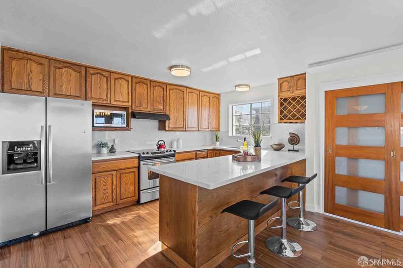 - Island, Pantry Cabinet, Quartz Counter