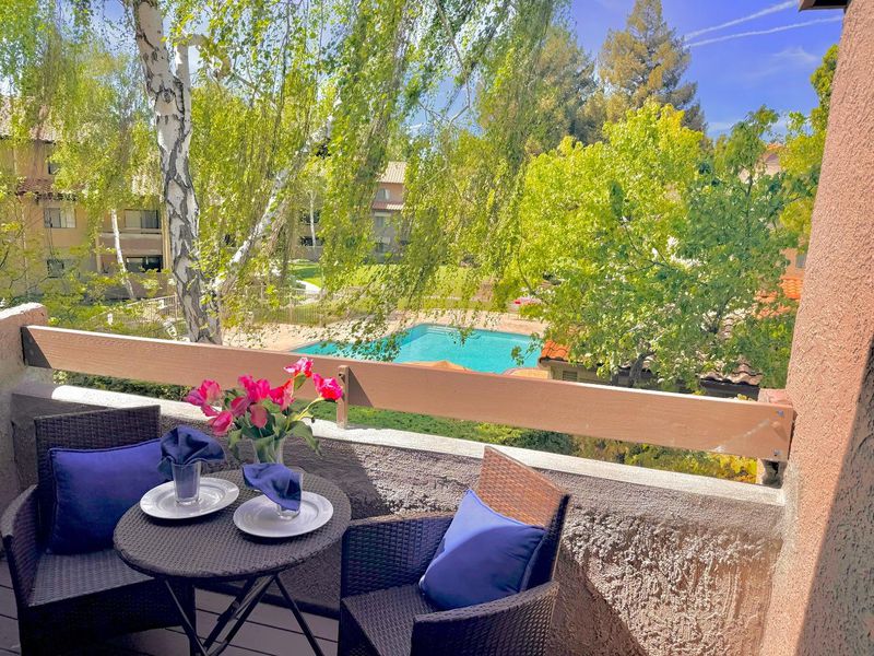 Overlooking the sparkling swimming pool, and red Spanish tile roofs in the community, this is one of the best locations in Coronado Vilas. This upper level 2-bed, 2-bath corner home comes with a private entry. Enjoy a picnic lunch on the deck on a warm California day, or retreat inside to spend time with family and friends. Enjoy both technology and convenience. Enhanced as a smart home, you can control functionality with your cell phone. Remodeled kitchen and bathrooms. Upgraded bathroom heated fans. Cozy carpet in the living areas, and convenient tile in the kitchen and bathrooms. Ample storage with two closets in the primary suite, coat closet, guest bedroom closet, and storage off deck. Reserved underground parking space and additional parking behind the building. Coronado Villas is a private, gated community in a park-like setting, with lush trees and flowers. Amenities include the swimming pool, spas, fitness center, BBQ area, car wash area, and playground. Located in the heart of Silicon Valley, near 101, 880, high tech employers, Santa Clara Town Centre (Target), Santana Row, bike trails, and Levi's Stadium.
