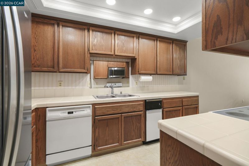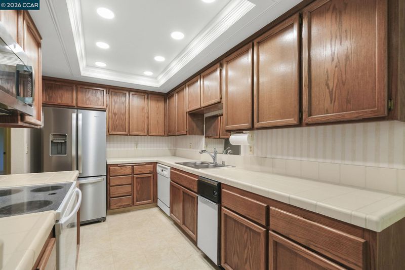 Electric Range, Trash Compactor, Dryer, Washer, Gas Water Heater, Tile Counters, Electric Range/Cooktop, Disposal