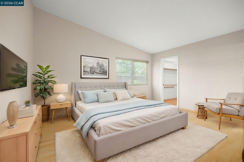 Rare 1 story duet townhouse in an amazing, well run community. Common area features a path along the greenbelt next to creek that runs through the neighborhood. Large private patio with no backyard neighbors and a view looking to the hills behind. Conveniently located next to the pool and clubhouse. Great Bones w/some updates, lovingly cared for by a long term owner. Upgrades and amenities include vaulted ceilings, fireplace & loads of windows that provide light and volume in the living space, making the 1398 SF feel bright & big. Recessed LED lights, updated dual pane windows and wood floors in the primary bedroom and hallway. Remote control window coverings. Recently painted inside (2024 and never lived in) and out. Convenient inside laundry space with additional storage cabinets, washer & dryer included. Tons of built in storage units in the garage and 220 power outlet for garage hobby/workshop or electric car power (confirm suitability)