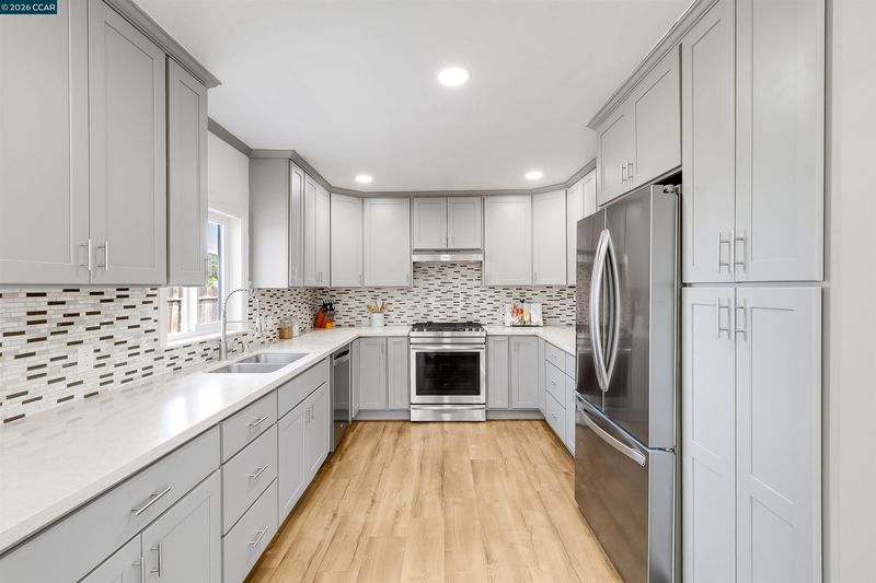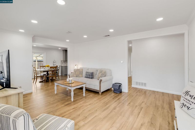 Welcome to this spacious and beautifully updated home, offering the perfect blend of comfort, functionality, and style. Featuring 4 bedrooms and 3 full bathrooms, this home is thoughtfully designed with room for everyone. A standout feature is the expansive additional living room, complete with vaulted ceilings, skylight, and direct access to the backyard, creating a bright and airy space ideal for relaxing or entertaining. The home also features canned lighting throughout, enhancing the modern feel, along with a freshly painted interior. The updated kitchen is equipped with stainless steel appliances and flows seamlessly into the dining area, where French doors open to the side yard—perfect for indoor-outdoor living. The primary suite offers a private retreat with a glass slider leading to the backyard, while two of the guest bedrooms include walk-in closets for added convenience. Three full bathrooms, including two showers, and one shower/bathtub combo. Step outside to your entertainer’s dream backyard, featuring multiple areas to gather, play, and unwind, including a deck, shaded pergola, large turf area, and spacious side yards. Additional highlights include a large U-shaped driveway, a 2-car garage with epoxy floors for plenty of parking. This home truly has it all!