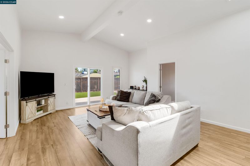 Welcome to this spacious and beautifully updated home, offering the perfect blend of comfort, functionality, and style. Featuring 4 bedrooms and 3 full bathrooms, this home is thoughtfully designed with room for everyone. A standout feature is the expansive additional living room, complete with vaulted ceilings, skylight, and direct access to the backyard, creating a bright and airy space ideal for relaxing or entertaining. The home also features canned lighting throughout, enhancing the modern feel, along with a freshly painted interior. The kitchen is equipped with stainless steel appliances and flows seamlessly into the dining area, where elegant French doors open to the side yard—perfect for indoor-outdoor living. The primary suite offers a private retreat with a glass slider leading to the backyard, while two of the guest bedrooms include walk-in closets for added convenience. Step outside to your entertainer’s dream backyard, featuring multiple areas to gather and unwind, including a deck, shaded pergol