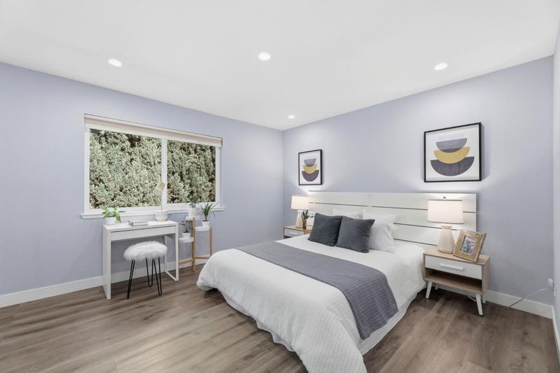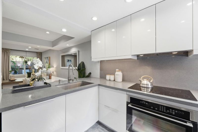 Rare two spacious primary suites townhome with Private Green Backyard at this price point. Don't miss out! Beautifully upgraded home offering 1,125 sq. ft. of well-designed living space in a quiet community location. The spacious living room features a newly added electric fireplace and flows into the dining area, creating an open and functional floor plan. Step outside to a private backyard surrounded by lush greenery perfect for relaxing. A powder room with in-unit washer/dryer adds convenience, while a smart mini office under the stairs provides a flexible work-from-home space. The kitchen showcases glossy modern cabinetry, quartz countertops, stainless appliances, and an exterior-vented exhaust. Upstairs, two spacious primary suites offer updated en-suite bathrooms, including a ceiling-mounted rain shower, along with upgraded closet systems. Additional features: recessed LED lighting, upgraded double-pane windows, a water softener, smart lock, thermostat, and motion-activated bathroom vent. 2 assigned underground parking spaces. Resort-style and gated community. Conveniently located near major tech employers, Costco, with close proximity to Caltrain and Santa Clara University. Top rated Middle and High School.