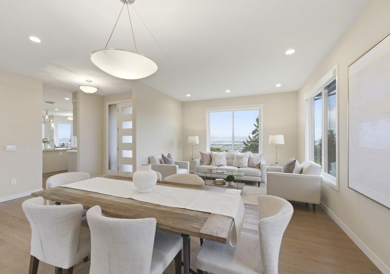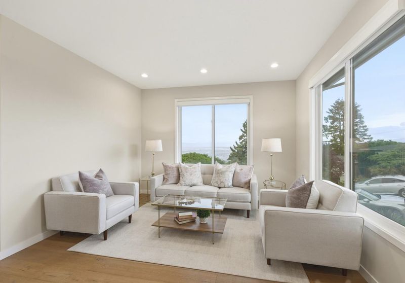 Beautifully situated, this home boasts incredible views of the Peninsula and Bay from expansive windows on both levels including the inviting front porch. Fine finishes are found throughout, including the open kitchen/family room with its high ceilings, gorgeous stone countertops and island with dramatic pendant lighting, and high-end stainless appliances. The upstairs primary suite provides more spectacular views, privacy, and a luxurious bath. The spacious yard is a gardeners delight with ample lawn area, retaining walls for flowering shrubs and plants, and several fruit trees. This delightful remodeled and expanded home beckons you to stay and enjoy the view - day or night!