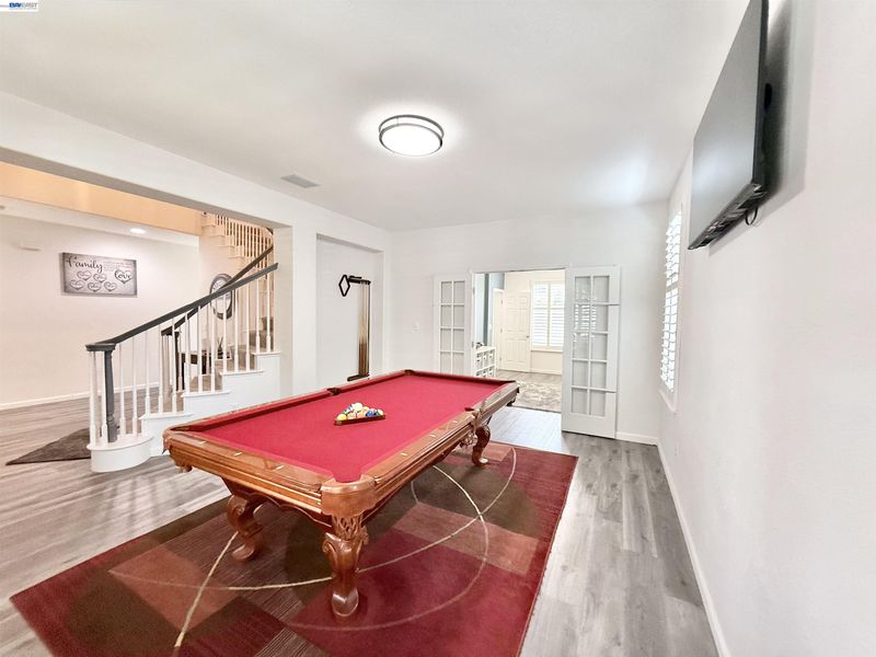 Welcome home to 4484 Lindsey Lane, located in the highly sought-after Glenbriar Estates in Tracy. This spacious two-story residence offers approximately 2,447 square feet of thoughtfully designed living space, featuring four bedrooms with the potential for a fifth. The versatile floor plan includes a full bedroom and a full bathroom conveniently located downstairs—perfect for guests or multi-generational living. In total, the home offers three full bathrooms, ensuring comfort and convenience for the entire household. Step inside to a grand entryway highlighted by soaring high ceilings & an elegant spiral staircase, creating a striking first impression. The entry level showcases newer flooring, adding a fresh and modern touch throughout the main living areas, while plantation shutters throughout the home add timeless style, privacy, & energy efficiency. The beautifully updated kitchen is designed for both functionality & style, making it an ideal space for cooking, entertaining, & gathering with family and friends. Outdoors, enjoy your own private retreat with an amazing landscaped backyard featuring a sparkling swimming pool—perfect for relaxing or hosting on warm California days. This home truly combines comfort, style, and location—don’t miss the opportunity to make it yours.
