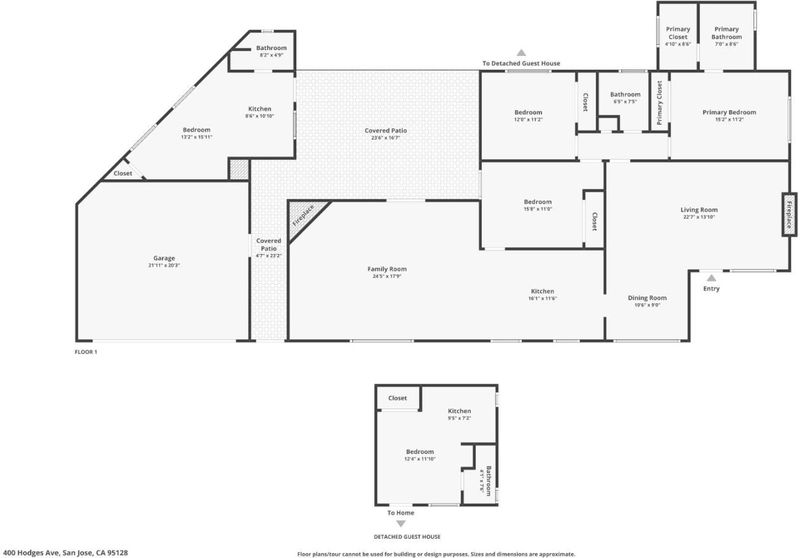 Welcome to your New Home! Lovely Home in Bradley Manor. Come see this well thought out Light & Bright Floor Plan, with all the Bells and Whistles! Located on an expansive corner lot with expert brickwork pathways, porches, and steps in front and rear. Main Home is a 1,832 Sq. Ft. +/-. Also, 2 Cottages on property, making total living space 2,382 Sq. Ft. =/-, Cottages are perfect for extended family while still maintaining privacy. The cottages are also a great opportunity for rental income and were used as Airbnb's for many years. Amenities include : Large Family Room, Oak Hardwood Floors, Dual Pane Windows, Newer Roof, Central Air Conditioning, Kitchen Skylight, Primary Bedroom with walk-in closet, Large covered Patio, Lush Grounds. Located close to Santana Row and Westfield Valley Fair. Easy access to 880 & 280 Highways for commute. Bradley Manor is a great place to call home. First time on market in 54 years!