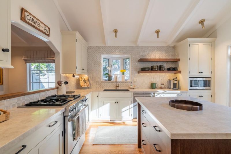 Step through the Dutch door and into a world of timeless enchantment. This 3-bedroom, 2-bathroom cottage captures the very essence of Carmel's "fairytale" charm, where every corner tells a story of comfort and craft. Inside, soaring vaulted ceilings and warm hardwood floors create an inviting sanctuary, bathed in soft coastal light. The heart of the home is a kitchen plucked from a dream, featuring the ethereal glow of Taj Mahal quartzite and the hand-pressed artistry of Zellige tile backsplash. Custom window treatments frame views of the surrounding greenery like living paintings. Retreat to your private, fenced side yard, the perfect place for tea, tall tales, or quiet reflection. The Rare Find: A detached 2-car garage provides modern convenience without breaking the spell of village living, with many possibilities. Discover the magic of a home that feels like a classic poem come to life, a quiet neighborhood just moments to town and the white sands of Carmel Beach.