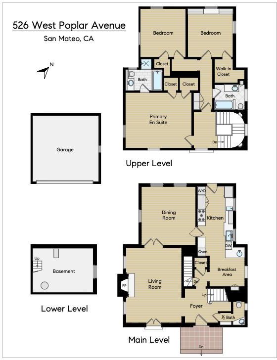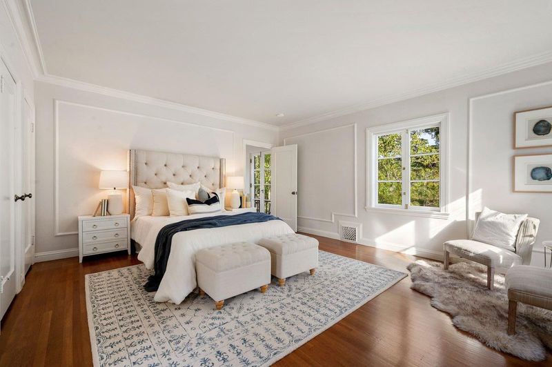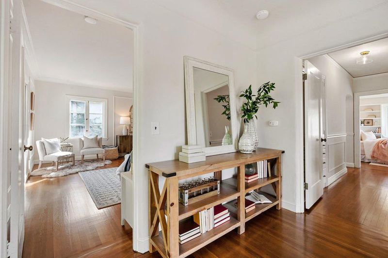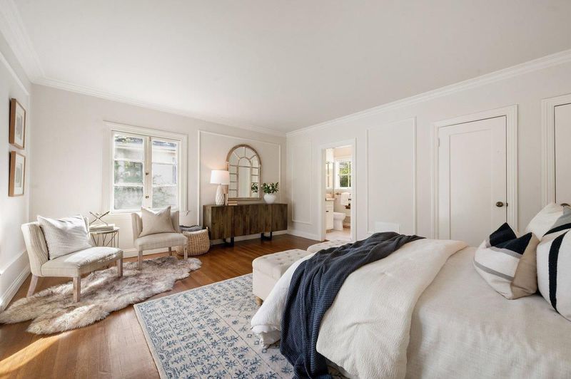 Nestled in one of the Peninsulas most sought-after neighborhoods & tucked behind flowering landscaping, 526 Poplar captures the romance & grace of classic San Mateo Park living. A lavish entryway welcomes you inside & leads to a grand staircase creating an elegant focal point & setting a tone of timeless sophistication. Beautifully refinished hardwood floors, abundant natural light & period details bring warmth & character throughout. Spacious rooms, high ceilings, generously sized bedrooms with large closets add comfort + practicality, while the ensuite primary bedroom offers a peaceful sanctuary. The formal dining room is ideal for entertaining, & the kitchen with stainless steel appliances, stone countertops, & a sunny breakfast nook is designed for easy living. The living room is the perfect space to cozy up around the gas fireplace. Outside, a gated driveway adds charm & privacy, while wisteria drapes over the sunny backyard patio, creating a beautiful space for entertaining or relaxing among mature trees & lush, low-maintenance landscaping. Set on a quiet street with friendly neighbors & lovely walking routes, the home offers an exceptional San Mateo Park lifestyle just minutes from downtown San Mateo & a short stroll to downtown Burlingames shopping, dining, & recreation.
