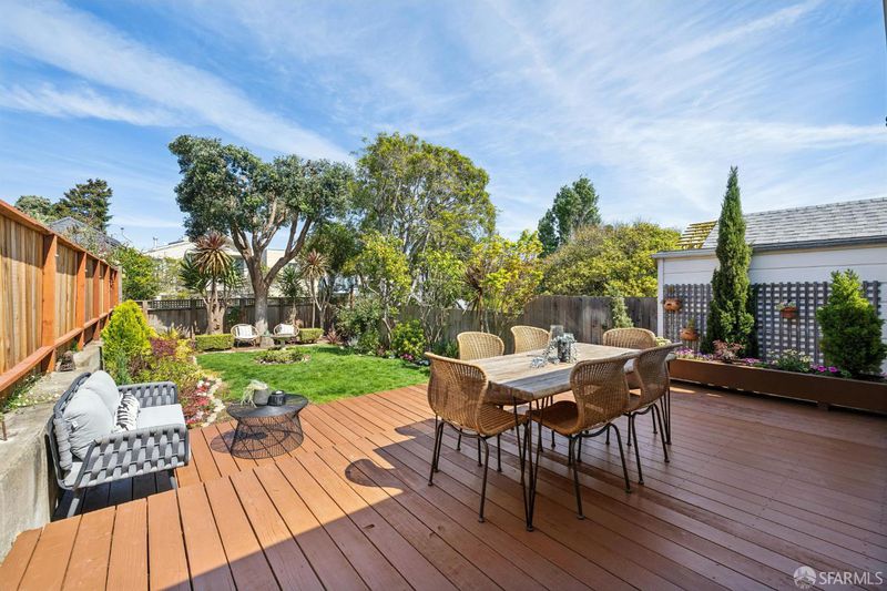 Offered for the first time in almost 4 decades, this 3-bedroom, 2-bath Edwardian residence is situated in the heart of Noe Valley. Rich in character, the home seamlessly blends timeless architectural detail with modern updates. Designed with both comfort and functionality in mind, the upper level features three generously sized bedrooms, a full bath, and an expansive roof deck showcasing panoramic views from downtown San Francisco to the East Bay. The main level welcomes you with a formal entry leading to a gracious living room anchored by the original fireplace and a stunning stained-glass window. The home flows effortlessly into a spacious family room and an elegant formal dining room adorned with box-beam ceilings and original built-ins. The beautifully renovated kitchen is the heart of the home, featuring quartz countertops with new Fisher & Paykel appliances. Just beyond, a remodeled full bath and a charming breakfast nook open seamlessly to the outdoors. Step outside to a flat, sun-soaked backyard, complete with multiple decks and a generous lawn. An idyllic setting for entertaining, play, or quiet relaxation. The lower level offers a spacious one-car garage with an EV hookup, along with a versatile bonus room, ideal for a home office or guest suite. This is a rare opportunity to own a true legacy property in one of San Francisco's most desired neighborhoods.
