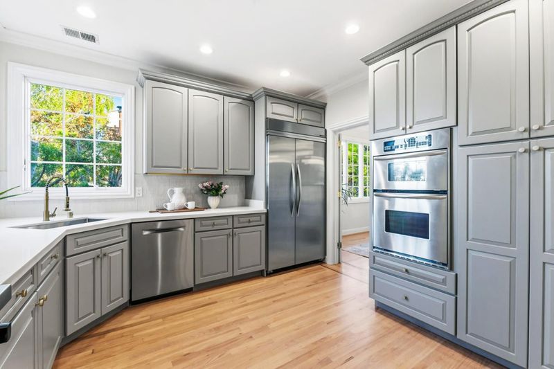 Gorgeous home with 3 bed plus an office in Eastern Addition, nestled in one of Burlingames most sought-after neighborhoods and served by top-rated schools, this fully remodeled residence blends timeless Tudor-influenced English Cottage design with modern comfort. Built with newer construction standards and building code, it offers enhanced structural integrity and lasting quality. Sun-filled interiors feature expansive windows, recessed lighting, and freshly refinished hardwood floor throughout. The elegant living room with fireplace is complemented by a separate family room with its own fireplace, creating versatile spaces for everyday living and entertaining. The chefs kitchen showcases quartz countertops, custom cabinetry, and high-end appliances including a built-in refrigerator and oven, with windows framing serene greenery outlooks. The primary suite is a private retreat with dual vanities, soaking tub, walk-in shower, and a spacious walk-in closet. Additional highlights include beautiful views in both levels, a dedicated laundry room with cabinetry, a private backyard, and AC. Complete with a garage and driveway parking, this home offers comfort and convenience in a premier Burlingame location. A rare opportunity to own a newer-built home in a classic neighborhood setting.