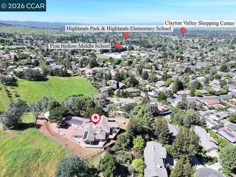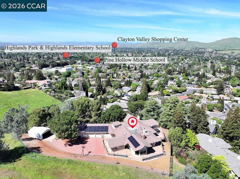 Be prepare to be impressed by this stunning Top-of-the-World home. Offering panoramic views overlooking Clayton & Concord, spanning from Mt. Diablo to the Oakhurst Country Club & from the foothills of Concord all the way to the Benicia Bridge. All on one level with no stairs or step-downs throughout the entire living area. This home offers nearly 4,000 sq. ft. of living space with owned solar. Featuring 4 bdrms (2 of them private ensuites & 3 full baths, 3 fireplaces, 2 large wine refrigerators, expansive living & family rooms and dramatic high ceilings. The oversized kitchen boasts abundant cabinet & storage space, 2 sinks & a massive center island. A stunning octagonal skylit cupola with exposed wood beams adds a truly dramatic focal point. Expansive windows throughout showcase the unparalleled views. Apx .68 acres of unmatched privacy with an impressive elevated setting offers exceptional seclusion. Fully fenced with private gated access, 3-car garage & a separate enclosed 2+ car carport. Additional features include exceptional entertaining decks that nearly surround the entire home & relaxing spa right outside the primary suite. Includes impressive full basement presenting exceptional expansion potential & level lot areas for ADU