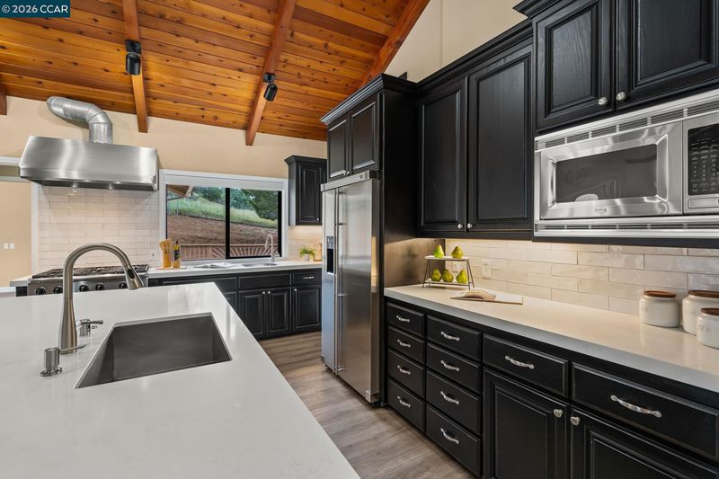 - Double Oven, Gas Range, Microwave, Refrigerator, Counter - Solid Surface, Gas Range/Cooktop, Kitchen Island, Updated Kitchen