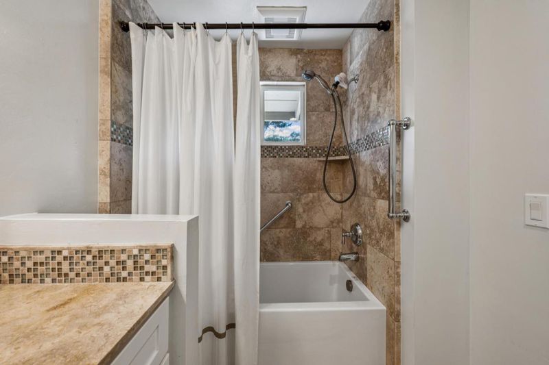 - Double Sinks, Granite, Stall Shower, Shower and Tub, Tile, Stone, Full on Ground Floor, Primary - Stall Shower(s), Outside Access