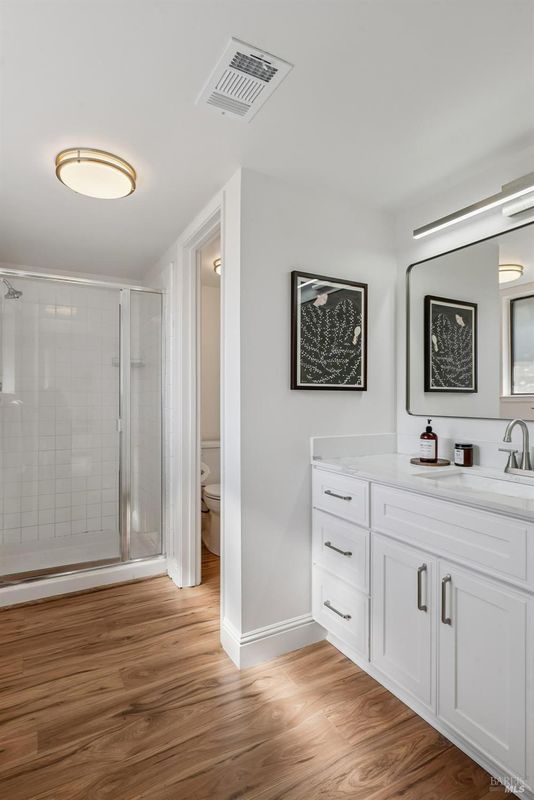 Discover the best of Marin living at 11 Pueblo Drive, a stunningly updated end-unit Mediterranean townhouse featuring 1,554 sq. ft. of stylish and comfortable space. This light-filled home offers four bedrooms and three bathrooms, with the versatile main-level bedroom currently serving as a convenient home office complete with in-closet laundry. The beautifully refreshed kitchen opens seamlessly to the dining and living areas, where you can relax by the cozy gas-starting, wood-burning fireplace. Every detail has been thoughtfully updated from the sleek new kitchen countertops and bathroom vanities to the modern interior doors, hardware, lighting, and gorgeous flooring throughout. Enjoy resort-style amenities including a sparkling pool, sauna, and clubhouse, all within a friendly, well-maintained community. Perfectly located near Marinwood Market, with easy access to Highway 101 and top-rated Miller Creek schools just minutes away, this home blends everyday convenience with the charm of refined comfort.