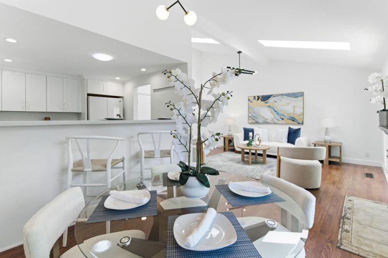 Beautifully remodeled townhome with vaulted ceilings and abundant natural light in the heart of Cupertino, offering a bright and modern living experience in a highly sought-after location. The main living area features a dramatic high ceiling with skylight and fireplace, creating a light-filled space that seamlessly connects to a private patio. The updated kitchen showcases brand-new cabinetry, countertops, sink, faucet, and exhaust fan, complemented by new flooring, fresh interior paint and recessed lighting Thoughtful upgrades extend beyond aesthetics, including updated gas lines, a replaced water heater, newer gas stove & AC. The garage offers generous storage room & features a modern opener system with built-in camera for added convenience and security. Enjoy access to community amenities: including swimming pools, tennis court, clubhouse + fitness center, and a childrens play area for relaxation. The community clubhouse also serves as a social hub, where children enjoy activities and build lasting friendships. Situated within the award-winning Cupertino school district. Ideally located minutes from Apple Park, Cupertino Village, shopping, dining, and major commuter routes including Hwy 280. This home presents an exceptional opportunity in the heart of Silicon Valley.