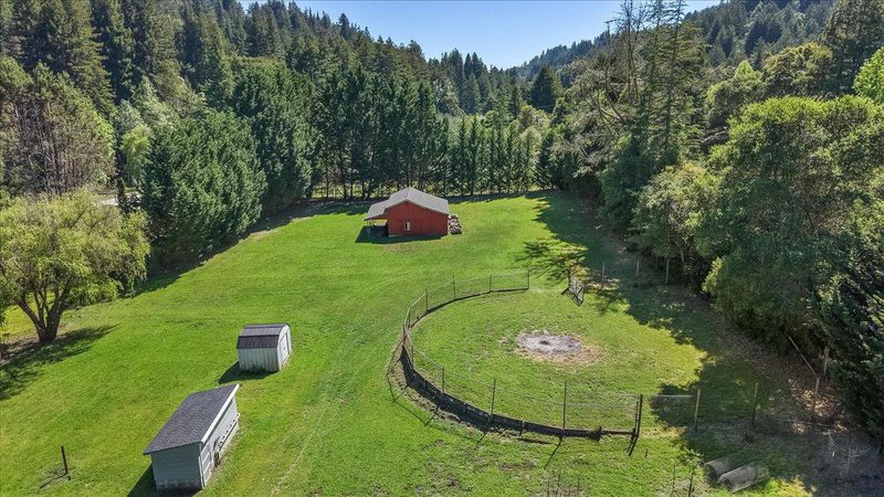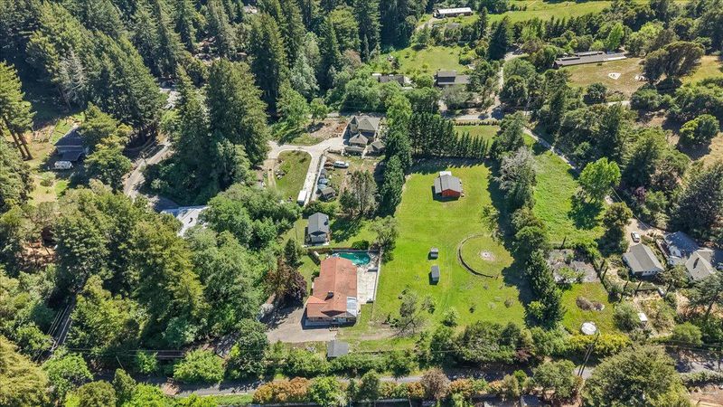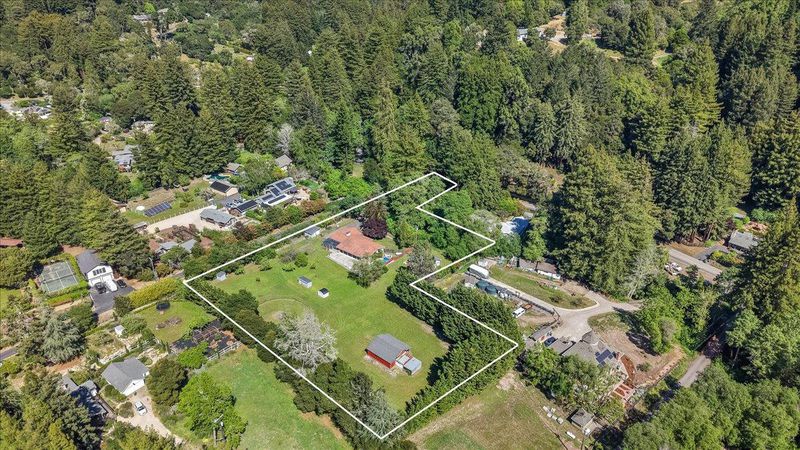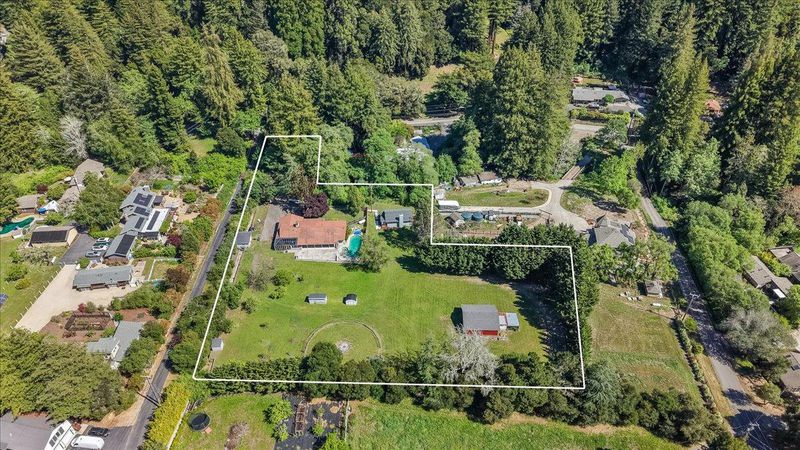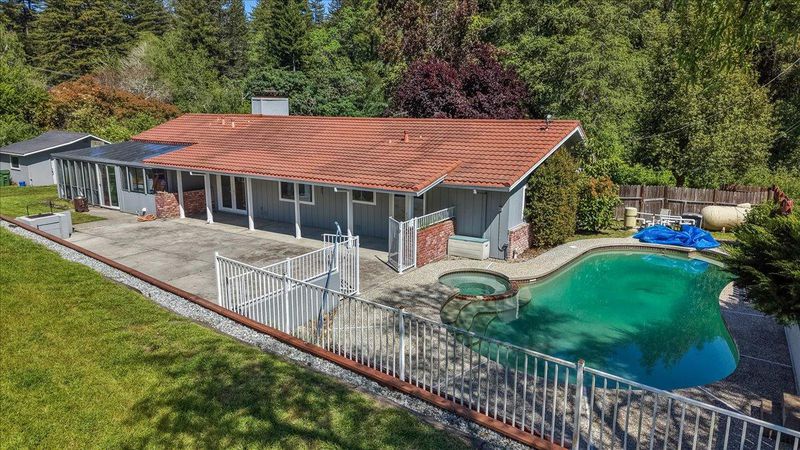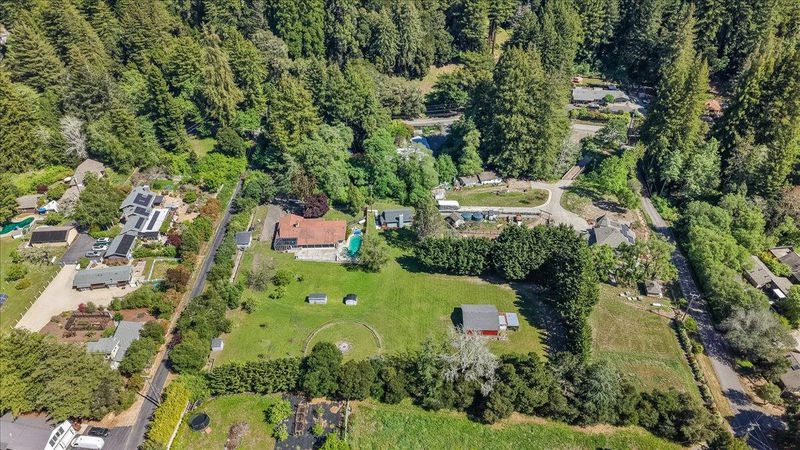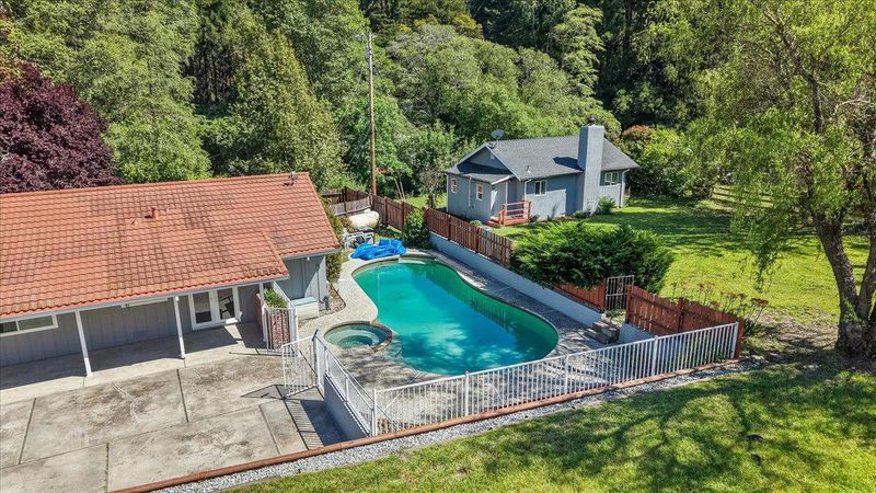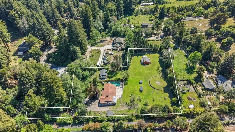 First time on the market in 50 years! This charming, single-level 3 bedroom, 3 bathroom home (plus den/possible extra bedroom) is located in the sought-after, highly-acclaimed Happy Valley Elementary School District and sits on a sunny, nearly flat, usable, 2.14 acre property with an in-ground pool. A huge bonus is also having the original, almost 700 sf, 3 room former-main house on the property with its own separate, legal USPS address for guests, in-laws, or rental potential. The hobby farmer or gardener will love the old and young fruit trees, wide-open natural field area, full sun exposure, and barn. Private, yet located only a short drive away from parks, trails, golf, and beaches. Great commute location! Get into Santa Cruz without having to use the fishhook or easily access hwy 17 to Los Gatos/San Jose. If you've been looking for a sun-drenched, close-in country home with a ton of possibilities in Happy Valley, this Santa Cruz gem might be it!