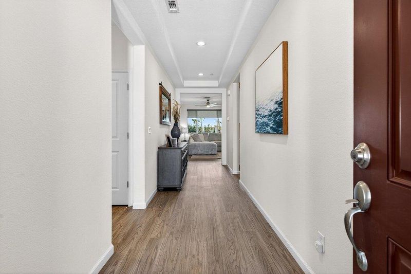 Welcome to the wonderful community of Bennett Ranch! 3088 Palomino Way is a 2,031 sf 4 bed/2.5 bath SINGLE STORY on a LARGE CORNER LOT with no neighbor behind or on one side. 6 Year Old Home with lots of Bells & Whistles providing WIDE OPEN living in a smartly designed space with gorgeous finishes. This home is LIGHT & BRIGHT with tons of windows and clear lighting, wide foyer and hallways & extra storage space near the laundry room/interior garage door. LIKE NEW but Better! Gorgeous LVP flooring with nicely coordinated BUILDER UPGRADES - Quartz countertops, doors, cabinets, appliances, fixtures, AC & ceiling fans. The garage interior is beautifully finished plus wired for EV & the driveway is EXTRA WIDE for ADDITIONAL PARKING. The front yard is set up for Low Maintenance living while the DELIGHTFUL backyard has been professionally created, providing tons of space to enjoy several different types of activities as well as some much needed R&R! Lawn, beautiful tile, a large patio area, gas line plumbed for outdoor kitchen set-up, Hot Tub ready & a peaceful COVERED PATIO prewired for a fan/light & designed especially for enjoying those GORGEOUS VIEWS all along the backside of the house. PAID SOLAR w/SOLAR GARD no True Up bill. NO HOA. County living just blocks away from City Vibes!
