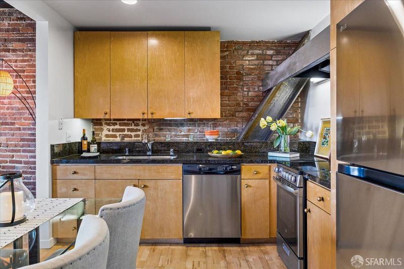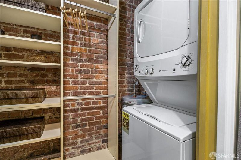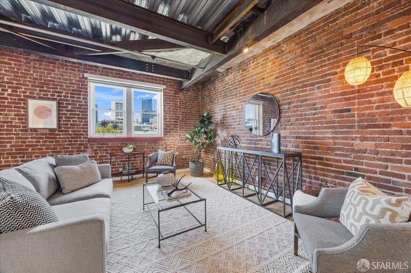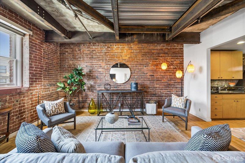 Step into SF history at the Jackson Brewery, a local landmark on the National Historic Register. This authentic condo-conversion fuses vintage spirit with contemporary edge, featuring exposed brick, riveted steel I-beams, and lofty concrete and steel ceilings. The generous L-shaped layout creates an open, flexible floor plan with an outfitted closet, full bath, in-unit laundry, and extra storage. The kitchen features stainless appliances and abundant cabinetry. The industrial-chic accents channel a cozy NYC loft vibe, creating a distinctive urban retreat. Conveniently situated amid tech headquarters, trendsetting restaurants, and vibrant nightlife. One off-street parking space, state-of-the-art Swiftlane entry system, key-secure elevator access, and a charming, shared deck with lounge seating and dining area complete the offering. Claim your own small piece of history and embrace San Francisco's past and present in this iconic one-of-a-kind metropolitan sanctuary.