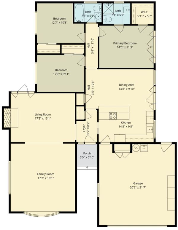 - Countertop - Quartz, Dishwasher, Garbage Disposal, Hood Over Range, Island, Oven Range - Electric, Refrigerator