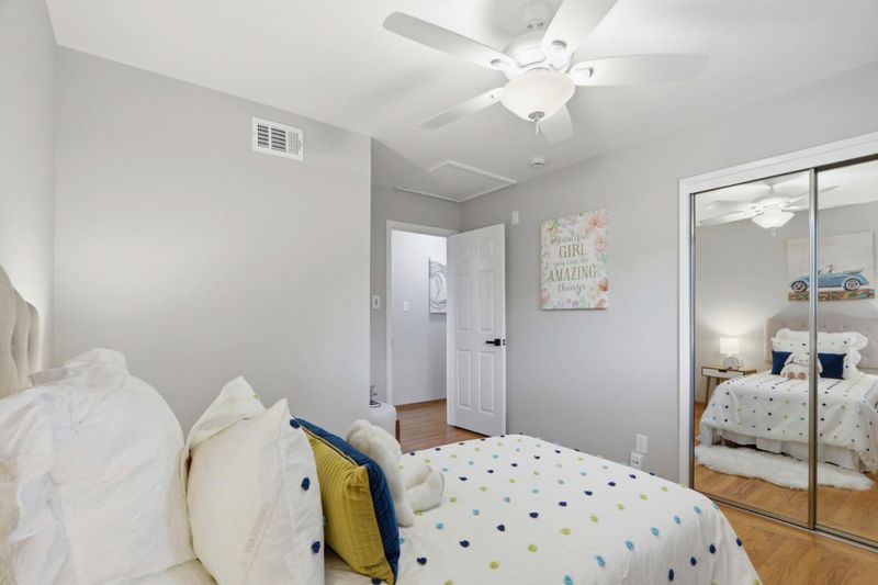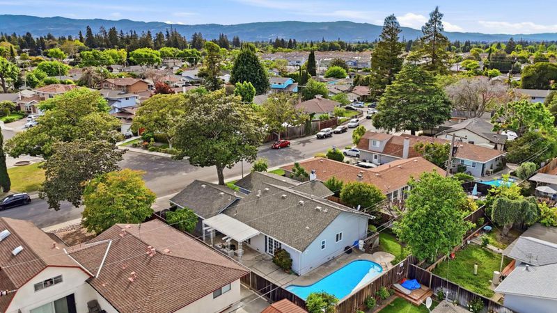Welcome to this beautifully updated home in highly desirable Killarney Farms neighborhd: perfect blend of modern upgrades, indoor-outdoor living, & prime location.3bed, 2baths, 1,727 sq ft on a 6,000 sq ft lot featuring hardwood floors throughout, fresh interior paint, & abundance of natural light creating a warm/inviting atmosphere. Fully remodeled kitchen is the heart of the home, showcasing new soft-close cabinetry, quartz countertops, breakfast bar island, stainless steel appliances, a sleek stainless hood; perfect for everyday living & entertaining. Enjoy seamless indoor-outdoor flow w 3 separate access points to the backyard: kitchen to patio; ideal for BBQs/casual dining.Off the living room to a peaceful seating area surrounded by lush landscaping, or access backyard directly from primary suite for effortless enjoyment of the solar heated pool & gas heated spa.The primary bedroom retreat includes a walk-in closet. Add'l highlights include: Double pane windows, recessed lighting, ceiling fans in bedrooms, all new interior doors, large family/living rooms. 2-car garage w storage.Ideally located mins to Kaiser, Apple & Nvidia campuses, walking distance to shopping/dining, close to 101/280. Both comfort & convenience in one of the areas most sought-after neighborhoods.