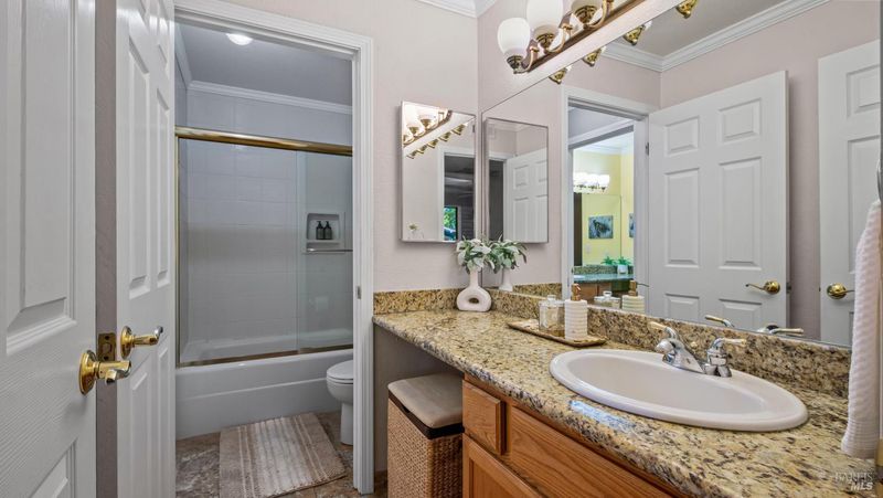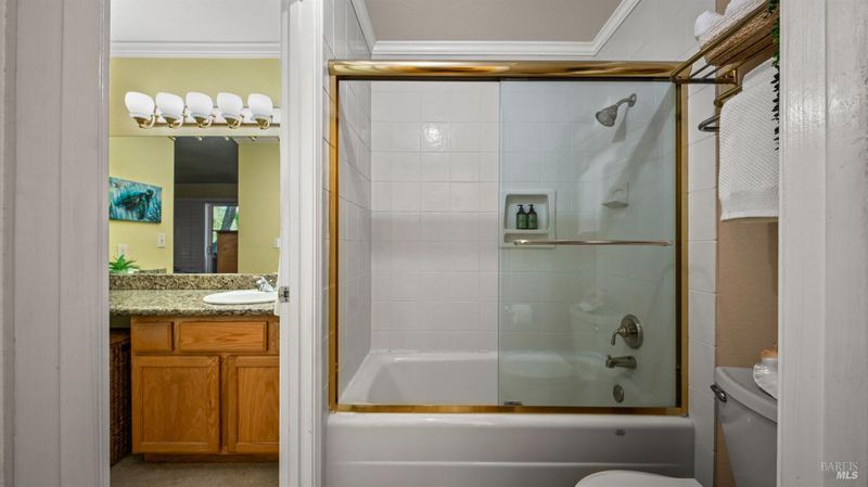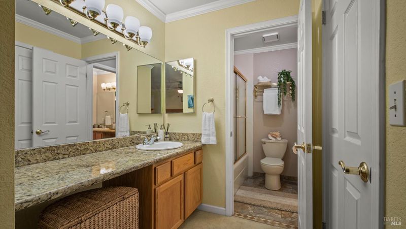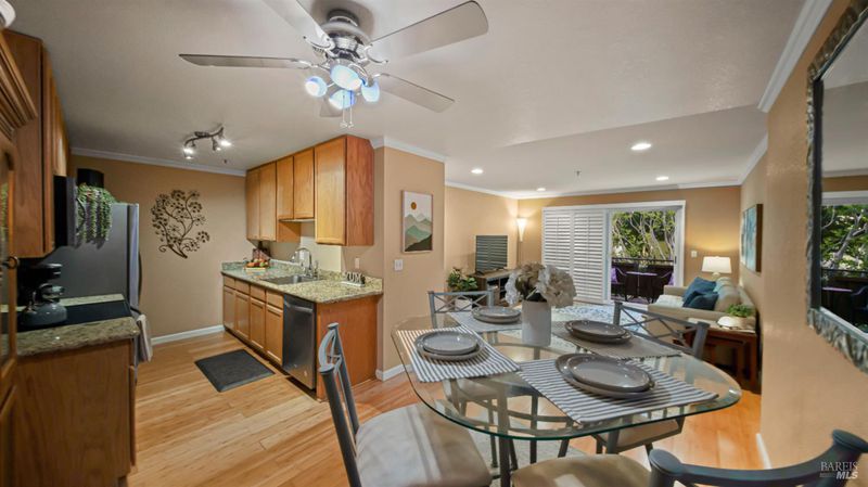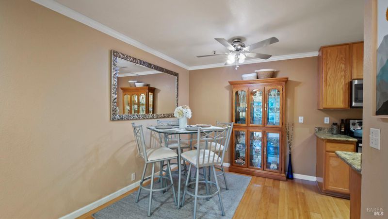 Welcome home to this charming and well-maintained upper-level condominium, where comfort and style greet you from the moment you step inside. Beautiful light-colored bamboo flooring, wooden shutters, and elegant crown molding throughout create a warm and inviting atmosphere. The kitchen is equipped with sleek stainless steel appliances, perfect for both everyday living and entertaining. Enjoy peaceful mornings or relaxing evenings on either of the two private balconies, one of which is nestled among the trees. This thoughtfully designed home features two spacious bedrooms connected by an L-shaped Jack-and-Jill bathroom, offering privacy with separate vanities for each room. The second bedroom includes a convenient Murphy bed, making it ideal for guests, a home office, or a flexible multi-use space. The community HOA provides excellent amenities, including water and garbage services, a sparkling swimming pool, fitness center, and tennis courts enhancing your lifestyle with ease and leisure. Ideally located just minutes from Vacaville Premium Outlets, local dining, shopping, and quick access to Highway 80, this home is perfect for commuters seeking both convenience and tranquility in a park-like setting. Don't miss the opportunity to make this inviting home your own!