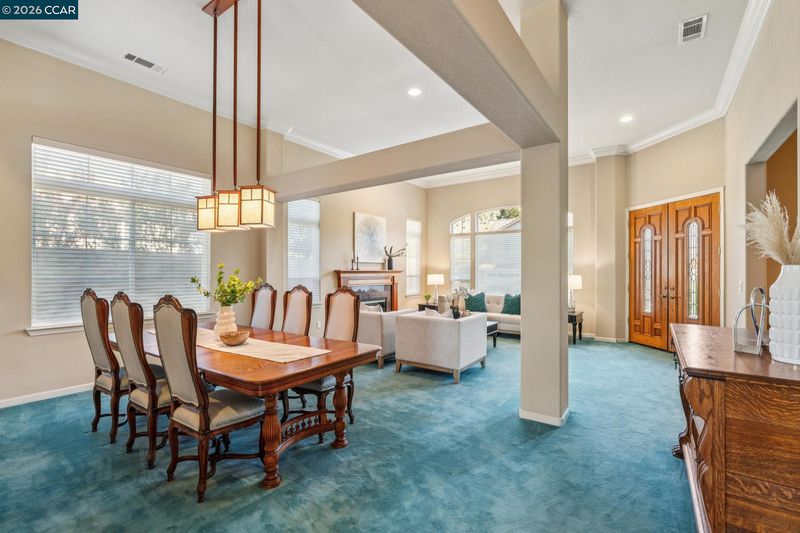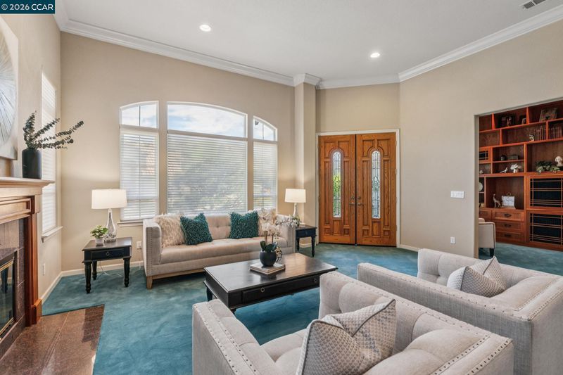 Stunning single-story residence in the prestigious Crystyl Ranch community, set against the picturesque foothills of Mt. Diablo. This beautifully appointed home offers an airy, light-filled layout with soaring ceilings & elegant crown moulding. The chef’s kitchen features an island, gas range, & opens to the main living space, ideal for everyday living & entertaining, while capturing serene views of rolling hills. The 3 bed/2 bath home includes a versatile study that can easily be converted to 4th bdrm. The luxurious primary suite features an expansive walk-in closet with custom built-ins & a spa-inspired bathroom complete with dual vanities, jacuzzi tub, & separate shower. The secondary bathroom also offers two sink vanities for added convenience. Dual-pane windows, copper plumbing, a 200-amp panel, newer HVAC, & two wood-burning fireplaces! Large 3-car finished garage boasts epoxy floors, custom storage, dual garage doors, & direct laundry-room access. Private, low-maintenance backyard with tranquil hill views, an ideal setting for entertaining or relaxing. Enjoy low HOA dues with resort-style amenities including pool, clubhouse, tennis, parks, & scenic trails. Minutes to Walnut Creek, Lime Ridge Open Space, shopping, dining & top-rated schools including NORTHGATE High in WC!