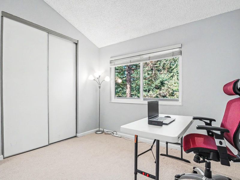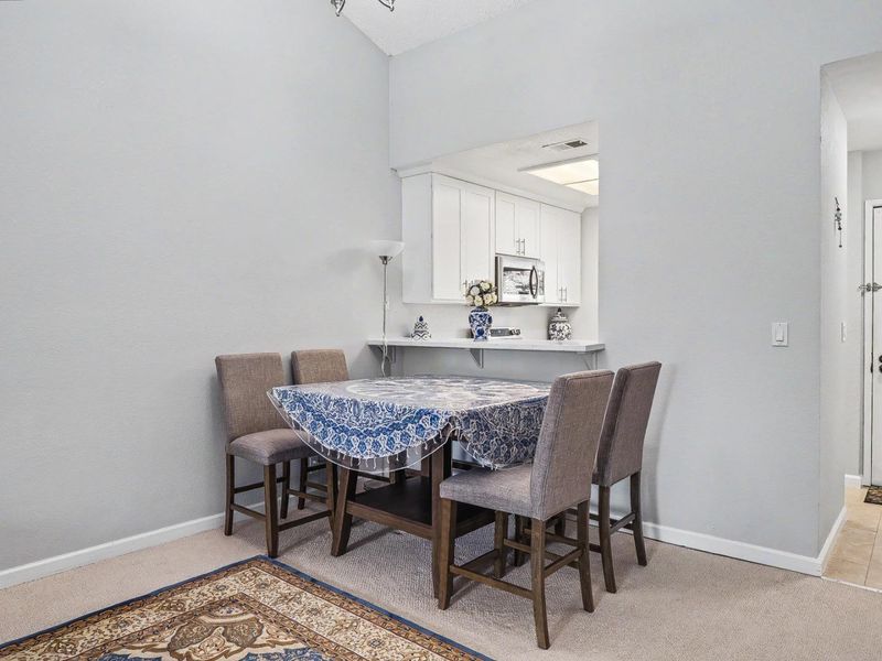 Experience serene Silicon Valley living in this move-in-ready, top-floor 2BR/2BA carriage unit, tucked away in a peaceful interior section of the complex. This light-filled home features soaring vaulted ceilings and a cozy fireplace in the spacious living area, creating an airy and sophisticated atmosphere. The tastefully remodeled kitchen is a chefs delight, boasting premium quartz countertops, a breakfast bar, contemporary cabinetry, and stainless steel appliances. A charming garden window frames tranquil greenbelt views, bringing natural light and greenery indoors. Functional features include energy-efficient double-pane windows and a sliding glass door leading to a private, oversized balcony perfect for unwinding. The interior includes durable tile flooring in the kitchen and bathrooms. Enjoy resort-style community amenities including a sparkling pool, clubhouse, and lush, redwood-lined grounds. HOA covers earthquake insurance, water, sewage, and garbage. Unbeatable location just minutes from Apple, Nvidia, and Santa Clara University, with seamless access to Lawrence and San Tomas Expressways. Walk to Central Park and the vibrant dining/retail of El Camino Real. Buyer to verify school enrollment. A perfect blend of style and convenience!