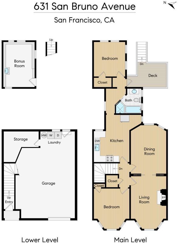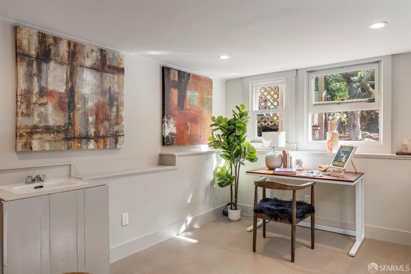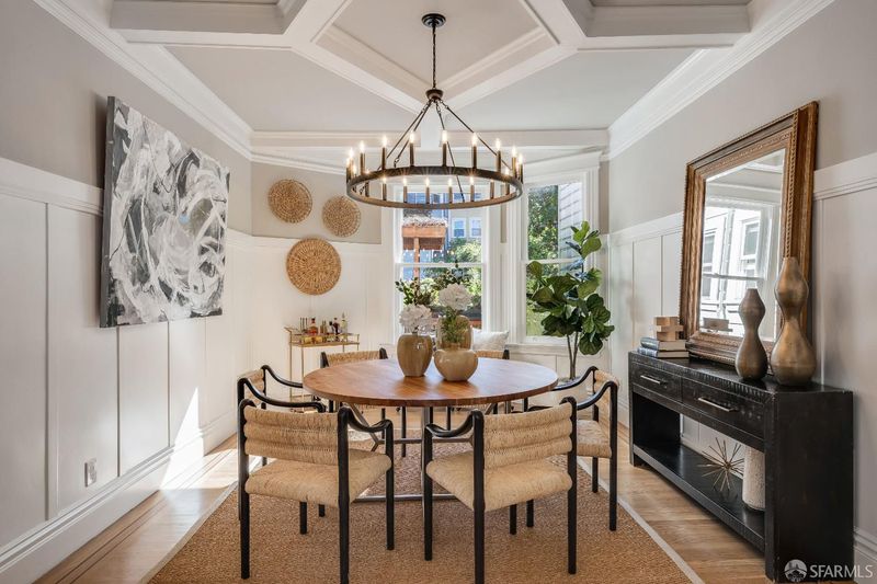 **Two Bedrooms Plus Office** - Located in the heart of Potrero Hill, widely known as San Francisco's sunniest and warmest microclimate, 631 San Bruno Ave blends classic SF architecture w/ extensive modern upgrades & exceptional outdoor space. The home makes an immediate impression w/ two full size bay windows, crown dentil molding, and a pastel stained glass entry framed by Greek Revival trim. Inside, beautifully refinished hdwd floors, coved ceilings, and period detailing highlight the home's craftsmanship. A major value add is the comprehensive electrical modernization completed w/ city permits. The home's outdated knob & tube wiring has been fully removed & replaced, bringing the property up to modern electrical standards. Improvements include updated outlets, paddle style switches, recessed lighting, modern thermostats, and hardwired smoke detectors throughout, offering the infrastructure and safety buyers value most in a classic SF home. The LR is centered around a classic brick FP and filled w/ natural light from a large bay window w/ dual pane wood windows. Pocket doors open to a formal DR featuring rich wood wainscoting and a dramatic coffered ceiling. The updated kitchen pairs subway tile & shaker cabinetry w/ quality appliances incl. a Wolf range, Whirlpool DW, and distinctive Elmira Northstar refrigerator. Two spacious BRs include a bright rear BR w/ multiple exposures and a front BR w/ peekaboo downtown views, plus a dedicated office space ideal for working from home. The BA features a marble topped vanity, vintage style fixtures, sep tub & stall shower. Outdoor living is exceptional for SF w/ a refreshed deck just off the home ideal for outdoor dining and stairs leading to a large landscaped & remarkably flat backyard w/ multiple areas for entertaining, relaxing, or play. A lower terrace offers additional flexibility and includes a nearby 220V outlet suitable for a future hot tub. The lower level also features a finished bonus room w/ recessed lighting, updated electrical, new flooring, fresh paint & wet bar, offering flexible space for office, media, or guests. An oversized garage provides excellent storage, W/D hookups, epoxied floor, and potential for expanded parking. A rare opportunity to enjoy classic SF charm, major electrical infrastructure upgrades, generous outdoor space & prime Potrero Hill living.