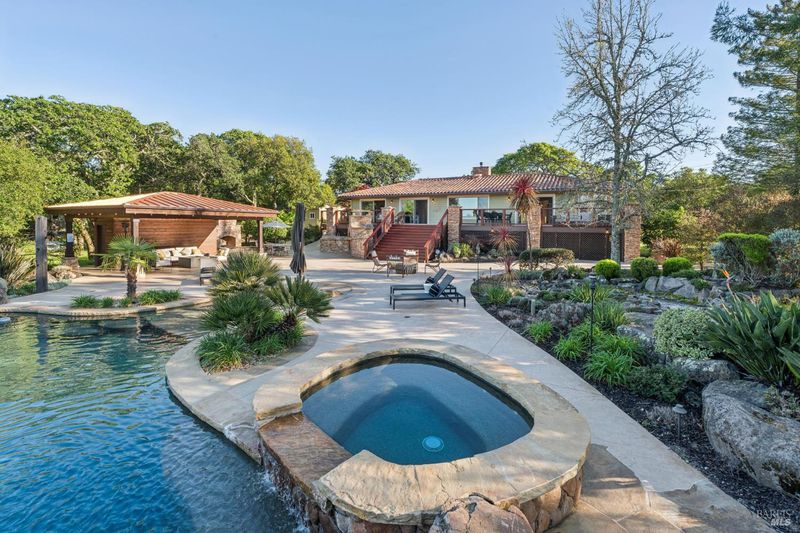 Exquisite Bennett Valley estate offering bespoke Sonoma living- 4 bedrooms, 2.5 baths on 1.94 acres, fully gated and backing directly to Annadel State Park with private access to miles of trails. Sited on a quiet dead end street, the property feels like a private preserve with mature specimen landscaping, a meandering stream, and sweeping, sunlit grounds. Entertainer's paradise: a spectacular resort-style pool, expansive terraces, a fully equipped outdoor kitchen, and a dramatic outdoor fireplace create an alfresco living experience of the highest caliber. Practical luxury includes a 3 car garage, paid-for solar, whole-house generator, and approved plans for a shop- offering both convenience and future expansion. Minutes to Glen Ellen and the historic Sonoma Plaza, with immediate access to premier wineries, acclaimed dining, and Annadel's hiking and mountain biking. A rare, refined retreat that elevates indoor-outdoor living in Sonoma County.
