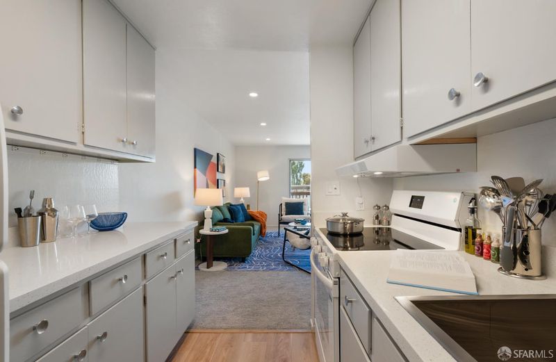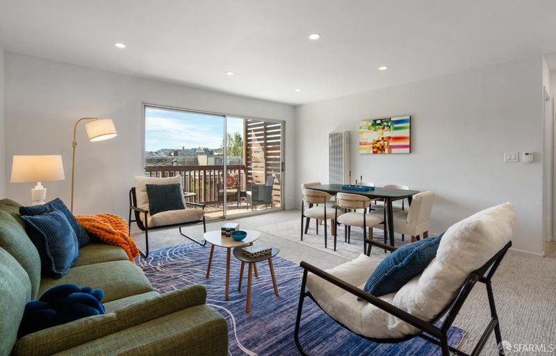 30K in updates made for the sale add to this rare value in SF offering south-facing ideal top-floor indoor/outdoor living with three bedrooms, two bathrooms, private outdoor space, parking included, located in between Hayes Valley and Fillmore, one-block to Japantown and owned and lived in only by original owner. The large open-concept living and dining room includes brand new recessed lighting with dimmer switches, new contemporary carpeting, and wide profile sliding glass door that provides bright natural light and opens out to a spacious balcony with tree-top, greenbelt and Sutro Tower outlooks. The living/dining flows into the kitchen which offers beautifully updated and generous quartz countertops, new range, new stainless sink, and faucet, new flooring, new electrical outlets and switches and full-height cabinetry. Long hallway separating entertainment and private spaces provides two large hallway closets including one walk-in for great additional storage. Three bedrooms each with new ceiling light fixtures, new blinds, can easily accommodate a queen bed, plus spacious closets, and bright sky and tree-top outlooks. Two full bathrooms each with new lighting, new faucets, new hand-held shower heads, new outlets, reglazed soaking tubs with shower above, and new pedestal sink in primary. Three large bedroom closets, a very generous walk-in hallway closet, additional hallway closet plus full-height kitchen cabinets equates to abundant closet and storage space. Freshly painted throughout. New thermostat. Ideal setting with three blocks of green space both people and dog-friendly, blooming plants, walking paths, and benches. A real community it also includes a community garden, basketball, playground, social hall, full-time onsite office staff, maintenance crew, 24-hour support number, and organized events and activities. Each intimate building is only three levels, only two units per floor, for a total of six units per entrance (buildings have a front and back door for extra convenience), and every unit has the ability to buzz guests in. All, yes, all utilities and parking included in dues (vs paying separately for each with changing utilities costs elsewhere) - only pay for wifi separately. Prime location close to Japantown with Hinodeya Ramen, Nijiya Market, Soko Hardware, ACE Hardware, AMC Kabuki, and various shopping and dining options, as well as close to Hayes Valley including a new Trader Joe's, Civic Center and the various performing arts.