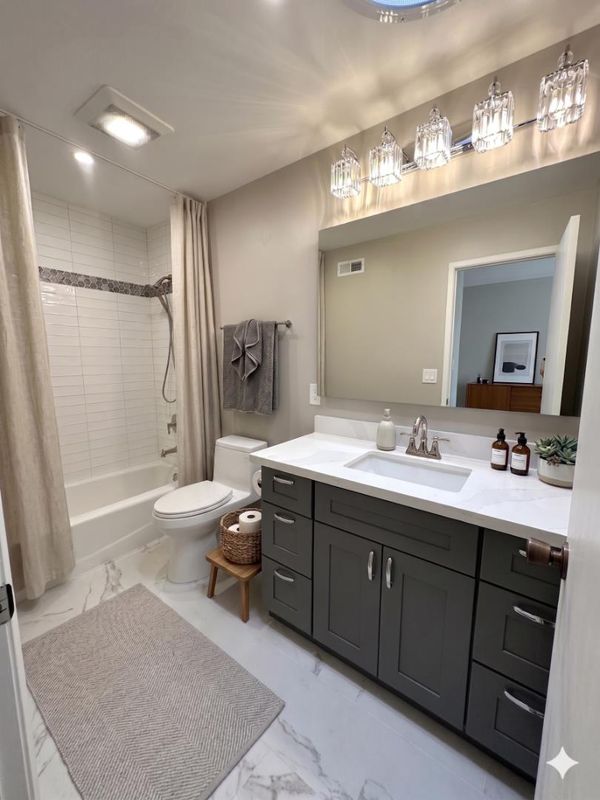 - 220 Volt Outlet, Countertop - Synthetic, Dishwasher, Garbage Disposal, Island with Sink, Oven Range - Electric, Refrigerator