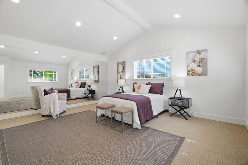 STYLISH EXPANSION ON PRIVATE CUL-DE-SAC | Masterfully updated and expanded by local builder Jon Wolverton for himself and his family, this home on a serene cul-de-sac in one of Sunnyvale's most beloved neighborhoods perfectly blends Craftsman character and modern sophistication, with open interiors adjacent to alluring gardens providing enchanting indoor-outdoor living at its finest. Two sets of gathering areas unfold from a skylit island kitchen, customized with cherry cabinetry, pull-out storage, and premium appliances, including a Thermador® professional-grade gas range with pot-filler. The expansive primary suite boasts a sky-lit bath, sitting room, walk-in closet, and private entry, while an office and flexible fourth bedroom/gym /flex space are tucked upstairs. Outdoor retreats are appointed with drip irrigation, fruit trees, and slate patios & footpaths with arbor and wisteria trellis. Highlights include an oversized two-car garage, surround sound, wide-plank hardwood floors, central cooling, and casement picture windows. Situated between Main Street Cupertino and Downtown Sunnyvale, this location is central to shopping, dining, entertainment, tech centers, and excellent Cupertino schools including West Valley Elementary, Cupertino Middle, and Homestead High.