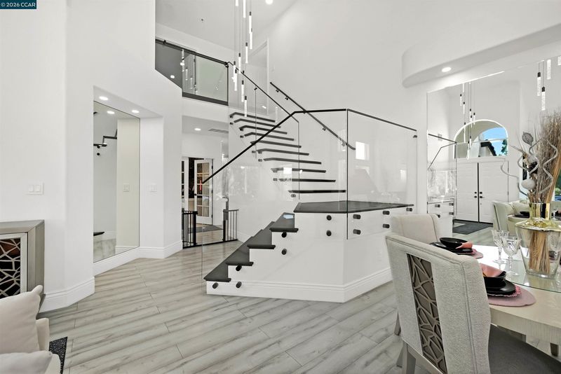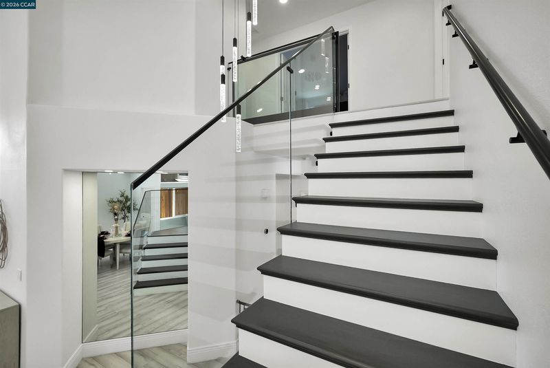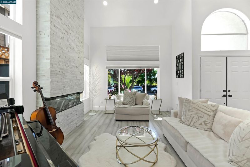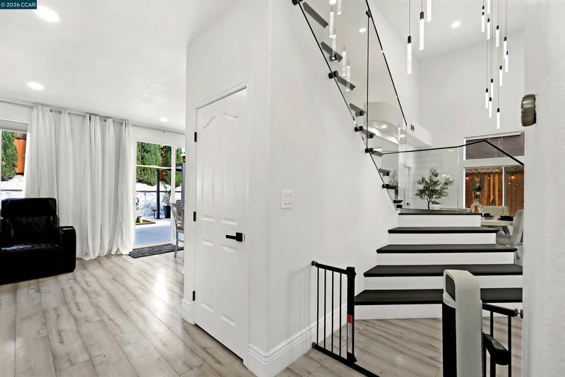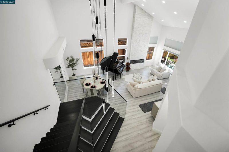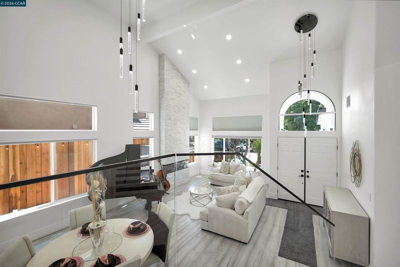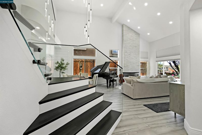 Welcome to a home that makes an unforgettable first impression. Showcasing striking curb appeal, soaring ceilings, and a beautifully remodeled interior, this residence blends modern elegance with everyday comfort. Natural light pours into the impressive main living area, highlighted by a stunning fireplace, statement glass staircase, and upscale finishes throughout. The updated kitchen offers a clean, timeless design with sleek cabinetry, generous prep space, and seamless flow for both daily living and entertaining. Upstairs, the spacious primary suite feels like a true retreat, while the remodeled bathrooms and versatile bonus/media room add comfort and flexibility. Step outside to a thoughtfully redesigned backyard where towering trees create a striking natural backdrop and an added sense of privacy. Enhanced with a beautifully updated retaining wall, expansive concrete hardscape, and a spa, the outdoor space is both polished and functional. Ideal for entertaining, unwinding, and enjoying the setting year-round. Stylish, inviting, and thoughtfully upgraded, this is the kind of home that truly stands apart.