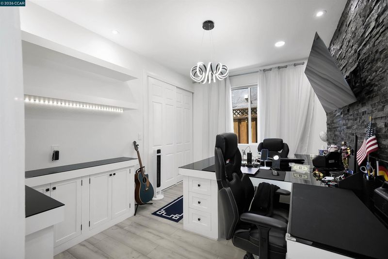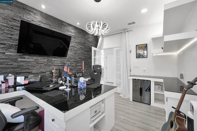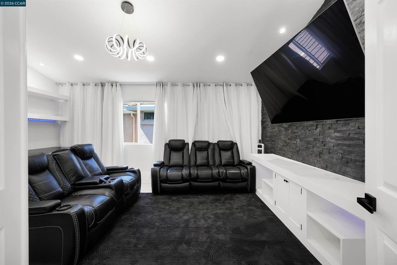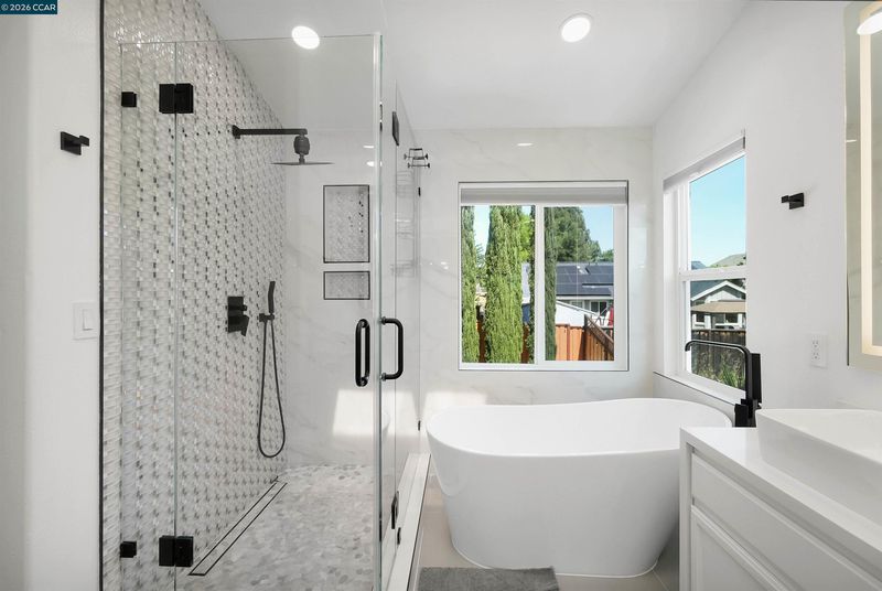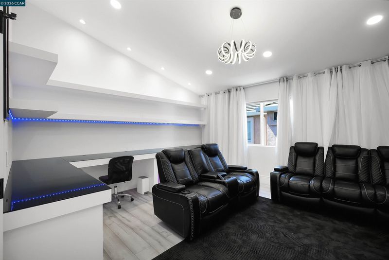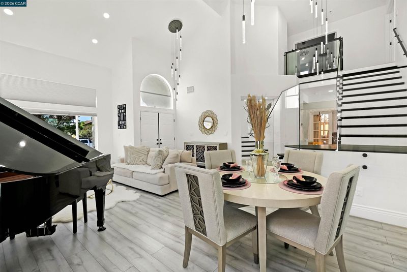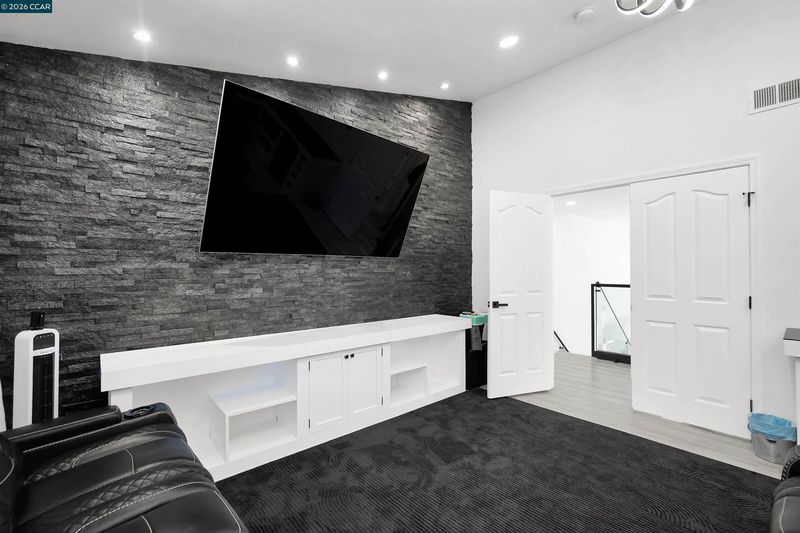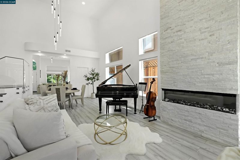 Welcome to a home that makes an unforgettable first impression. Showcasing striking curb appeal, soaring ceilings, and a beautifully remodeled interior, this residence blends modern elegance with everyday comfort. Natural light pours into the impressive main living area, highlighted by a stunning fireplace, statement glass staircase, and upscale finishes throughout. The updated kitchen offers a clean, timeless design with sleek cabinetry, generous prep space, and seamless flow for both daily living and entertaining. Upstairs, the spacious primary suite feels like a true retreat, while the remodeled bathrooms and versatile bonus/media room add comfort and flexibility. Step outside to a thoughtfully redesigned backyard where towering trees create a striking natural backdrop and an added sense of privacy. Enhanced with a beautifully updated retaining wall, expansive concrete hardscape, and a spa, the outdoor space is both polished and functional. Ideal for entertaining, unwinding, and enjoying the setting year-round. Stylish, inviting, and thoughtfully upgraded, this is the kind of home that truly stands apart.