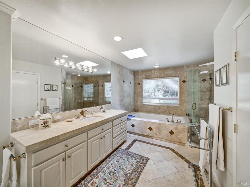 - Bidet, Closet, Double Sinks, Jetted Tub, Low-Flow Shower(s), Multiple Shower Heads, Soaking Tub, Walk-In Closet
